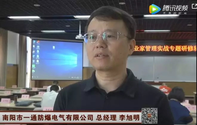 一通防爆作為南陽(yáng)防爆電氣產(chǎn)業(yè)發(fā)展的標(biāo)桿企業(yè),公司總經(jīng)理李旭明也受邀參加了此次活動(dòng),并接受南陽(yáng)電視臺(tái)采訪(fǎng),發(fā)表研修活動(dòng)后的感受。